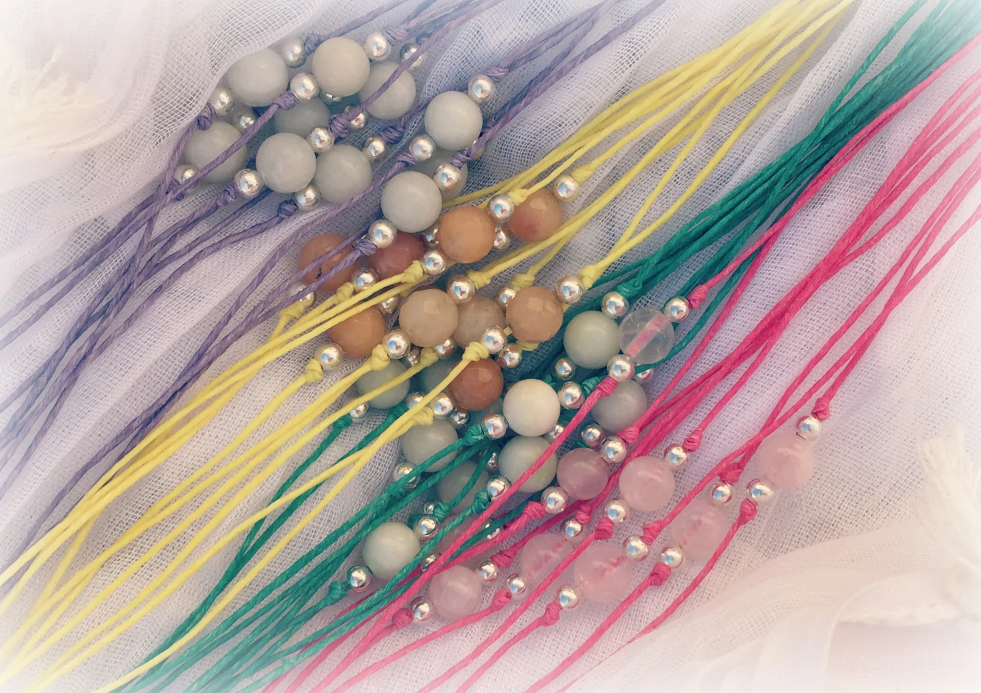 Every piece is hand made using Irish Linen string and carefully selected beads. Each piece has been made with intention and is to be worn with intention - allowing you to connect more deeply with what you most want and deserve!